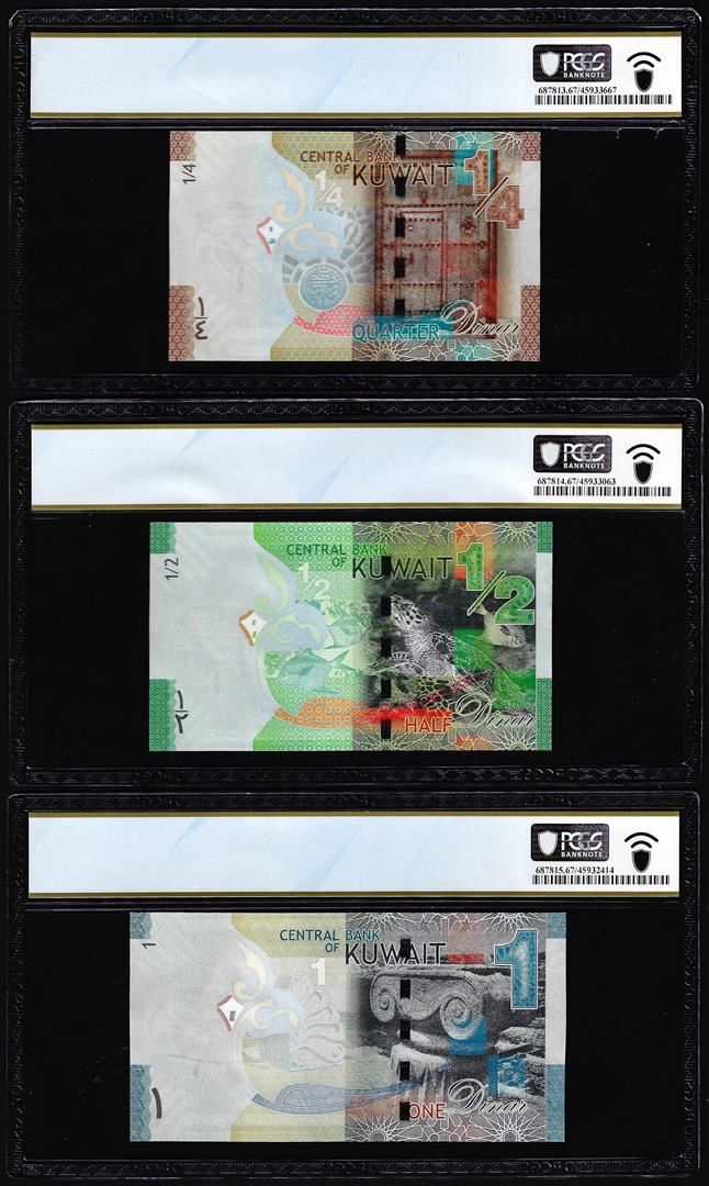 Lot of 2014 Kuwait 1/4, 1/2 & 1 Dinar Notes PCGS Superb Gem Uncirculated 67PPQ