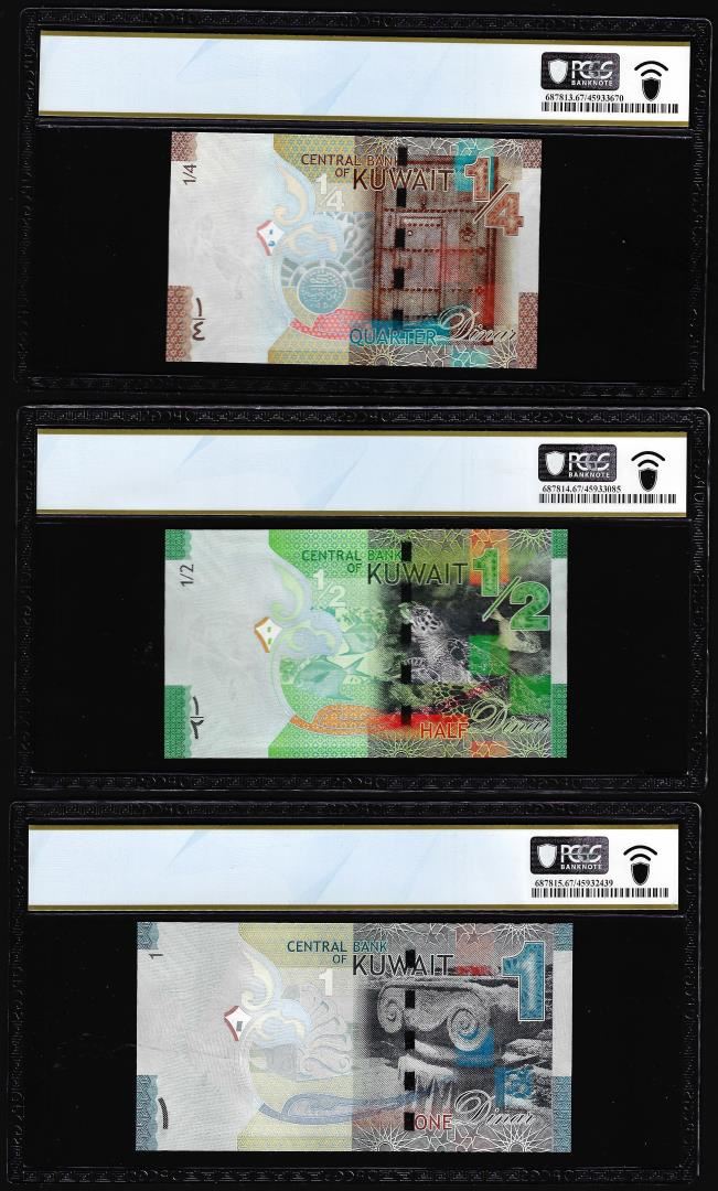 Lot of 2014 Kuwait 1/4, 1/2 & 1 Dinar Notes PCGS Superb Gem Uncirculated 67PPQ