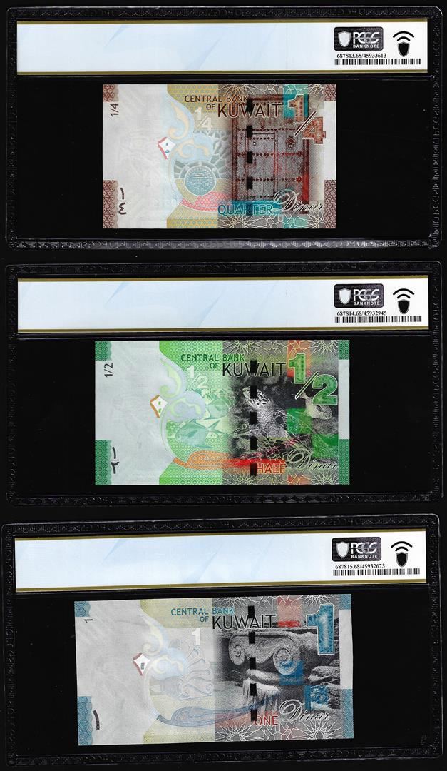 Lot of 2014 Kuwait 1/4, 1/2 & 1 Dinar Notes PCGS Superb Gem Uncirculated 68PPQ