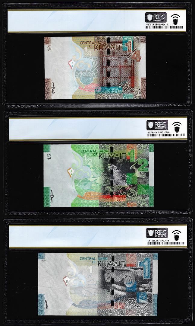 Lot of 2014 Kuwait 1/4, 1/2 & 1 Dinar Notes PCGS Superb Gem Uncirculated 68PPQ