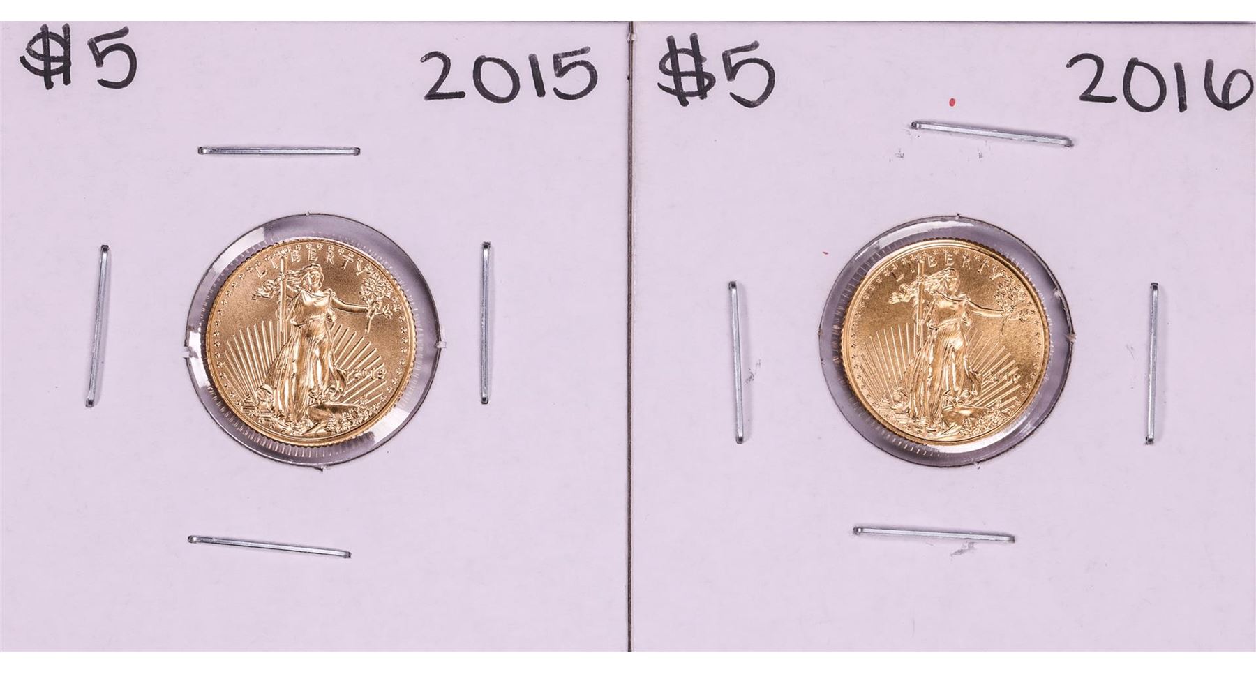 One Lot of 2015-2016 $5 American Gold Eagle Coins.