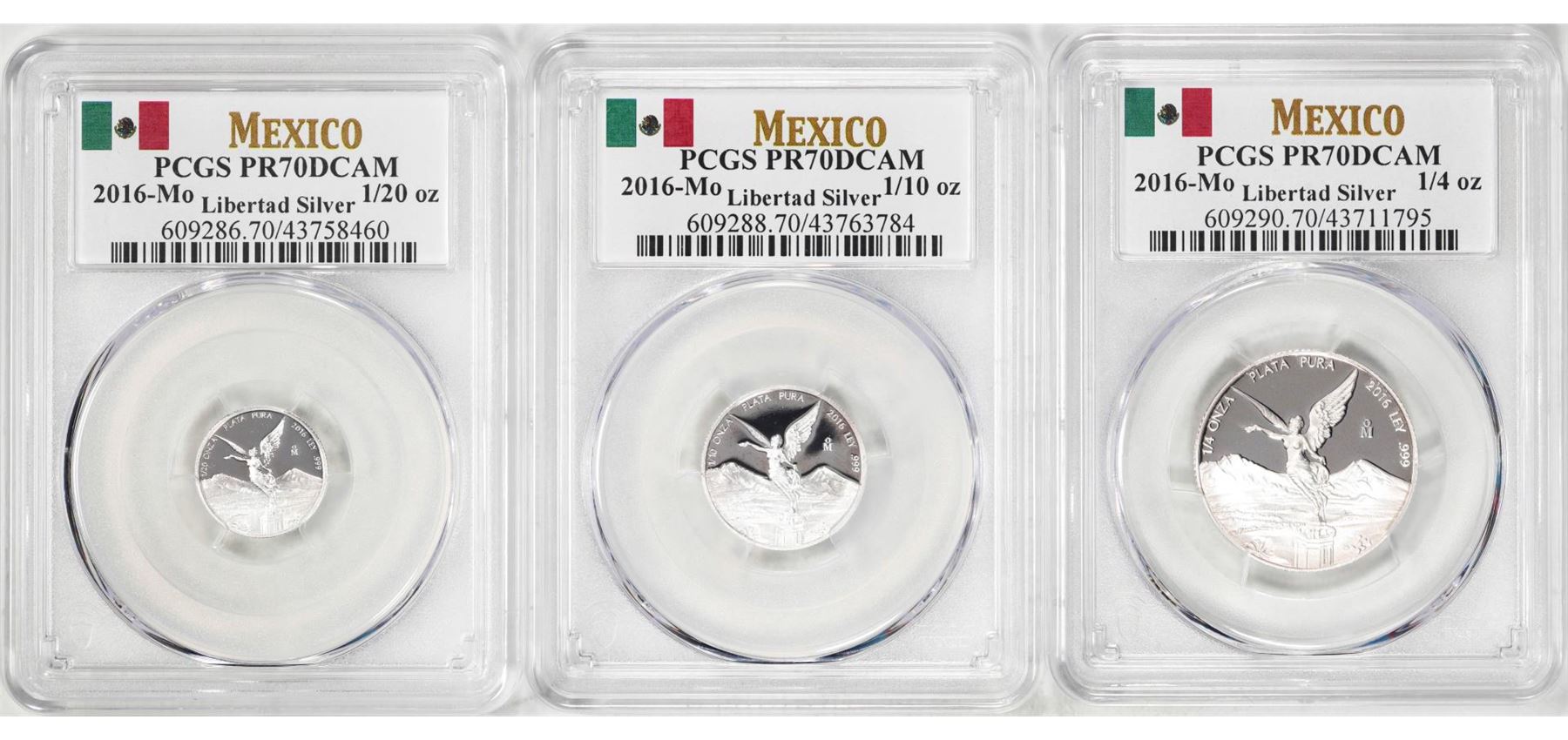 Lot of 2016-Mo Mexico Proof 1/20, 1/10 and 1/4 oz Silver Libertad Coins PCGS PR69DCAM