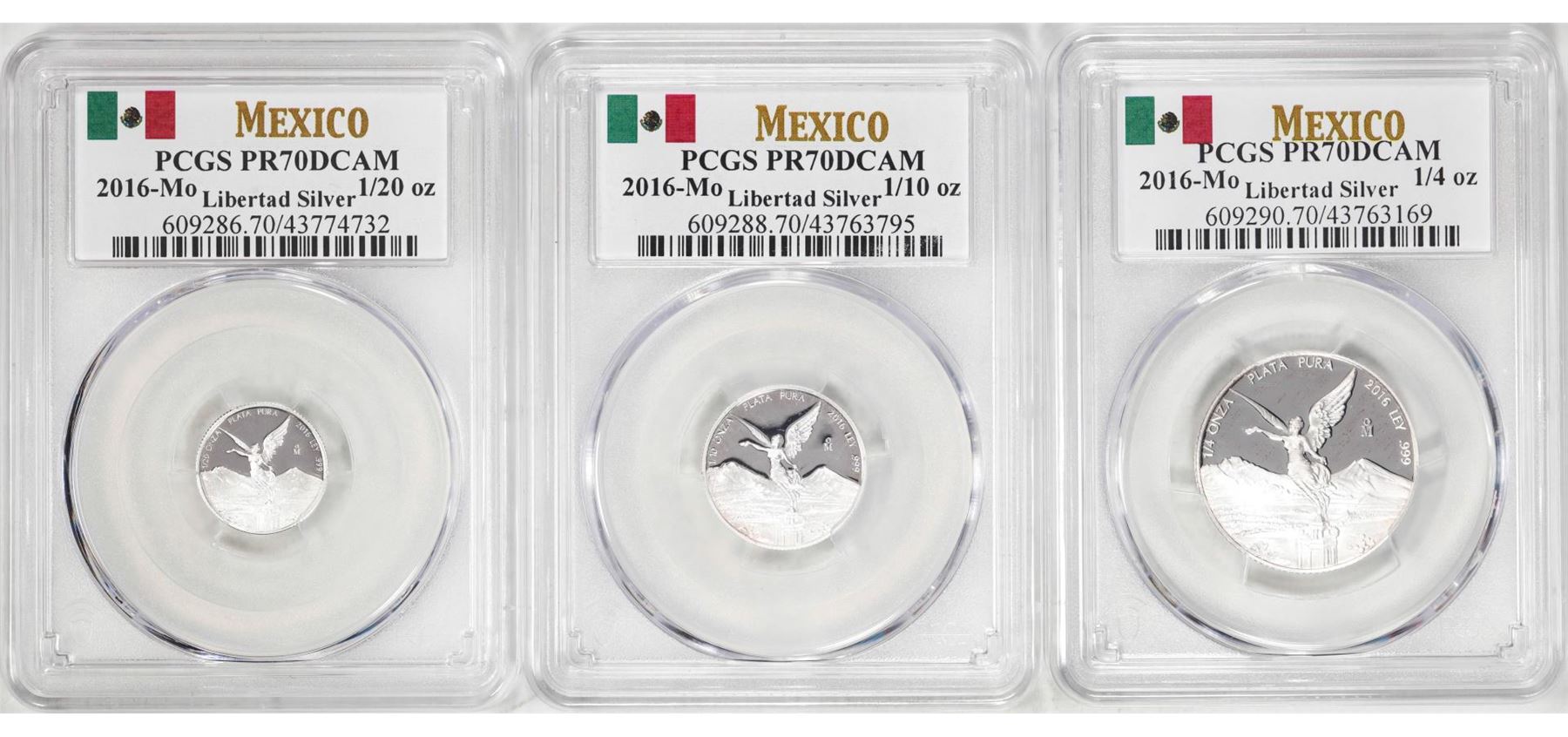 Lot of 2016-Mo Mexico Proof 1/20, 1/10 and 1/4 oz Silver Libertad Coins PCGS PR69DCAM