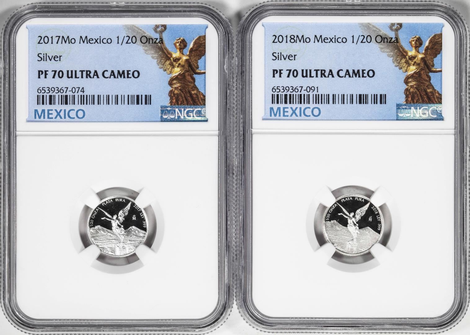 One Lot of 2017-2018-Mo Mexico Proof 1/20 oz Silver Libertad Coins NGC PF70 Ultra Cameo. NGC Certified.