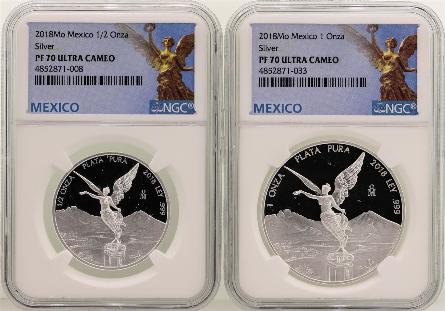 One Lot of 2018 Mexico 1 Onza & 1/2 Onza Libertad Proof Coins NGC PF70 Ultra Cameo. NGC Certified.
