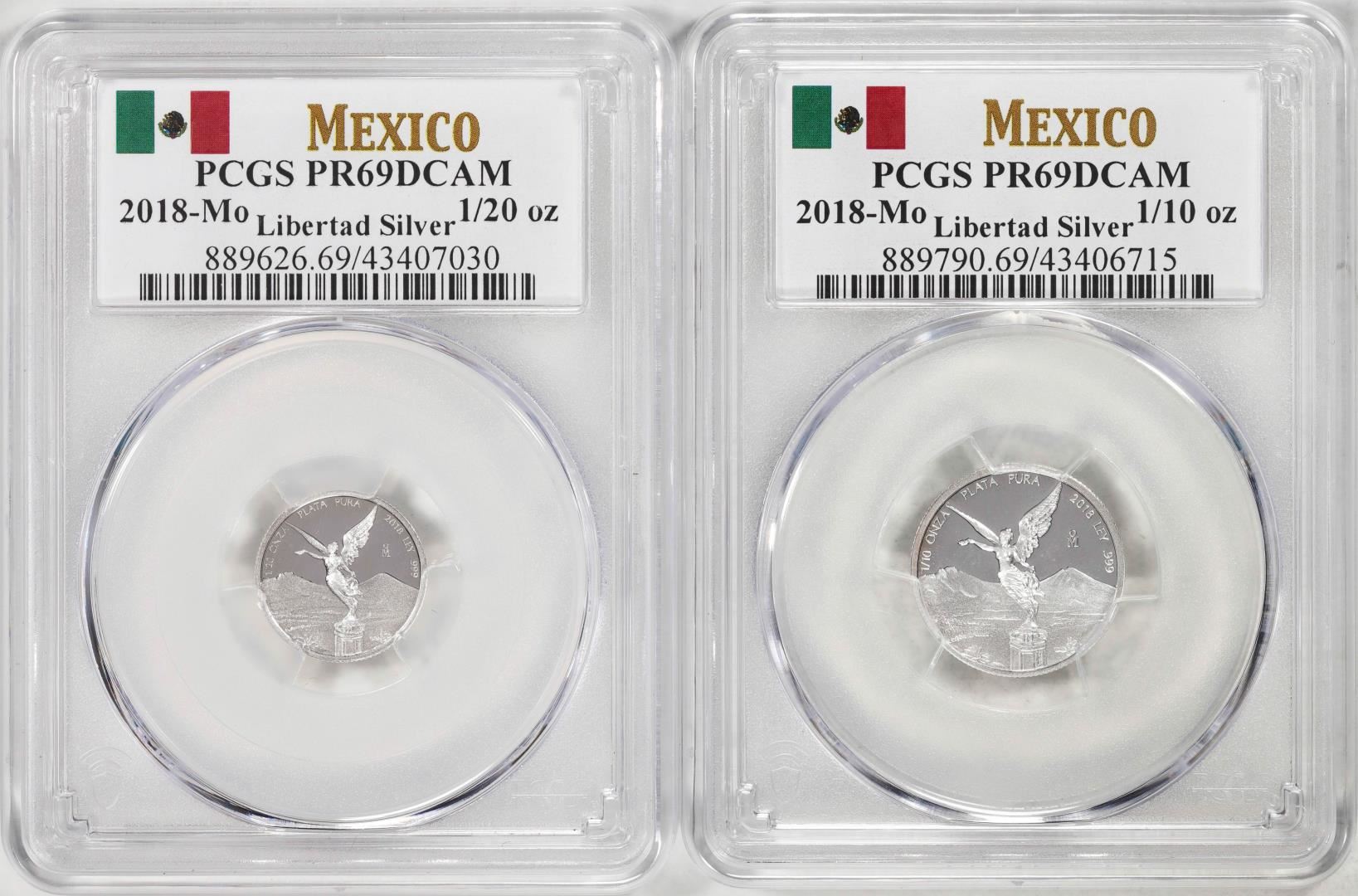 Lot of 2018-Mo Mexico Proof 1/20 and 1/10 oz Silver Libertad Coins PCGS PR69DCAM