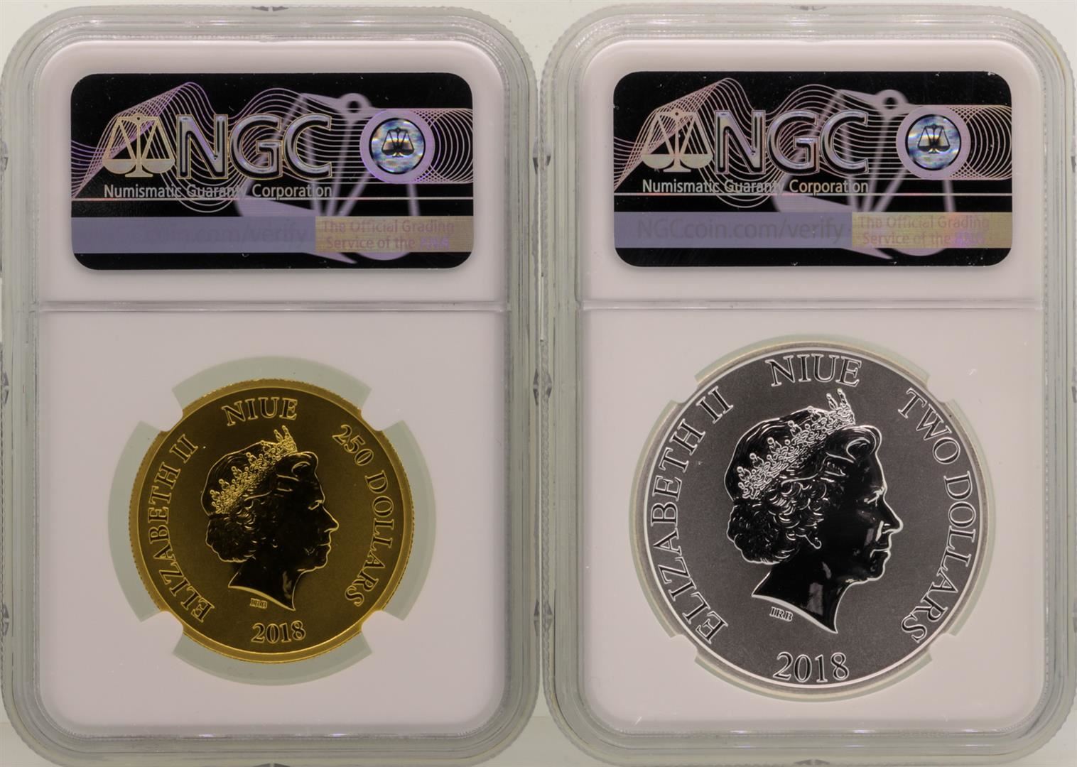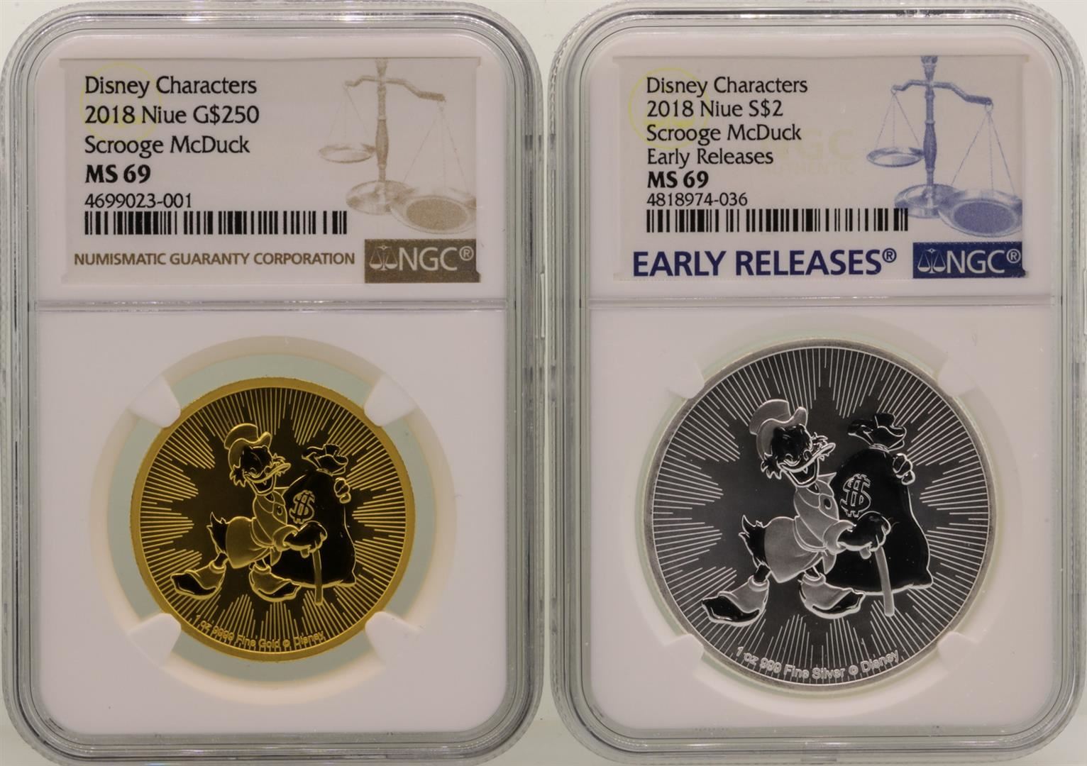 One Lot of 2018 Niue Disney Scrooge McDuck Gold & Silver Coins NGC MS69. NGC Certified.