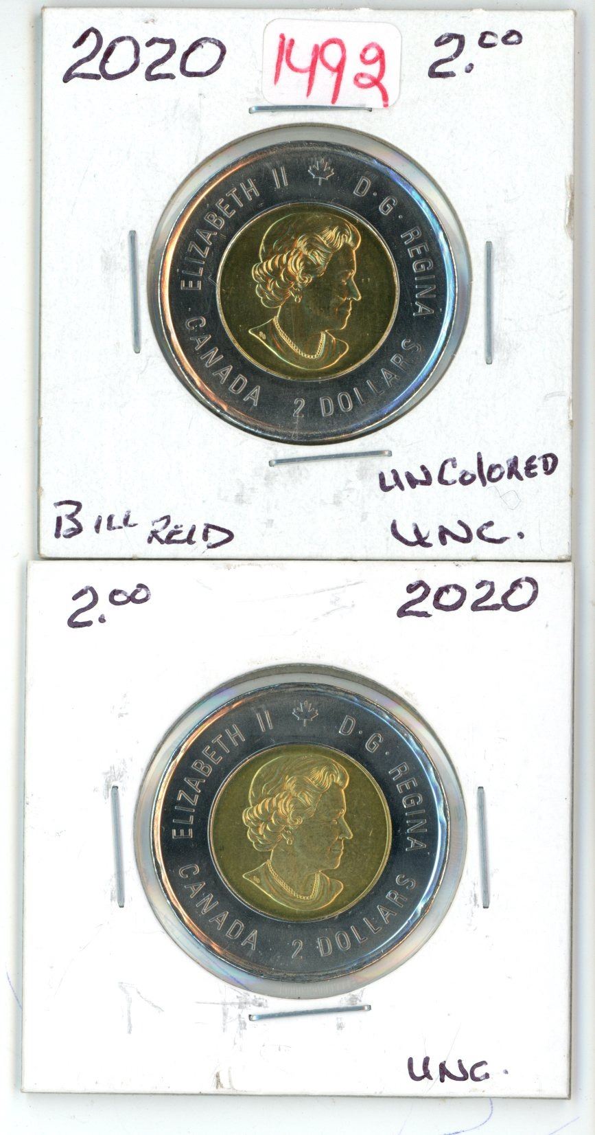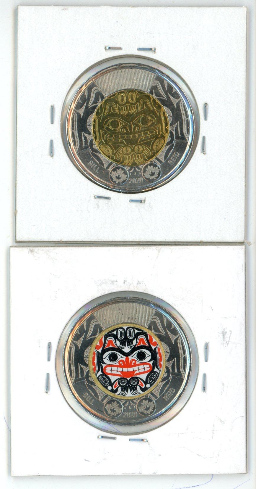 Lot of ( 2020 bill reid UNC) (colored/non-colored) canadian toonies