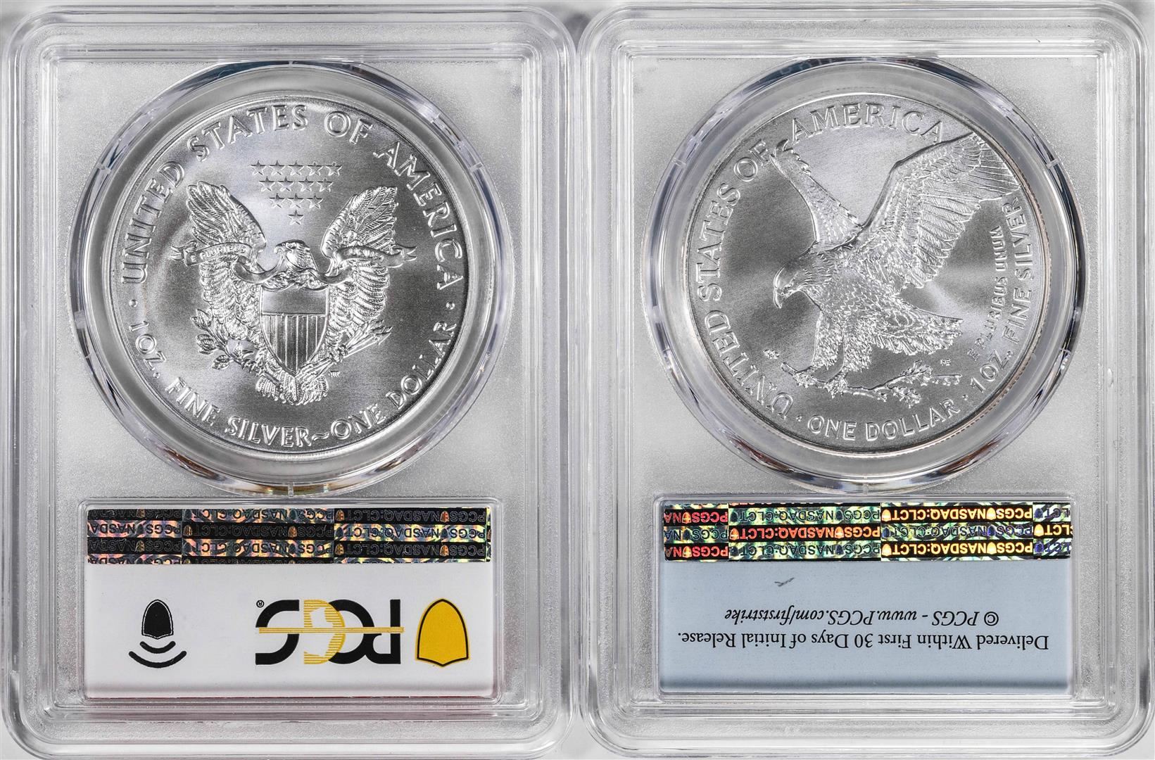 One Lot of 2021-(S) Type 1 & 2 $1 American Silver Eagle Coins PCGS MS70 First Strike. PCGS Graded.