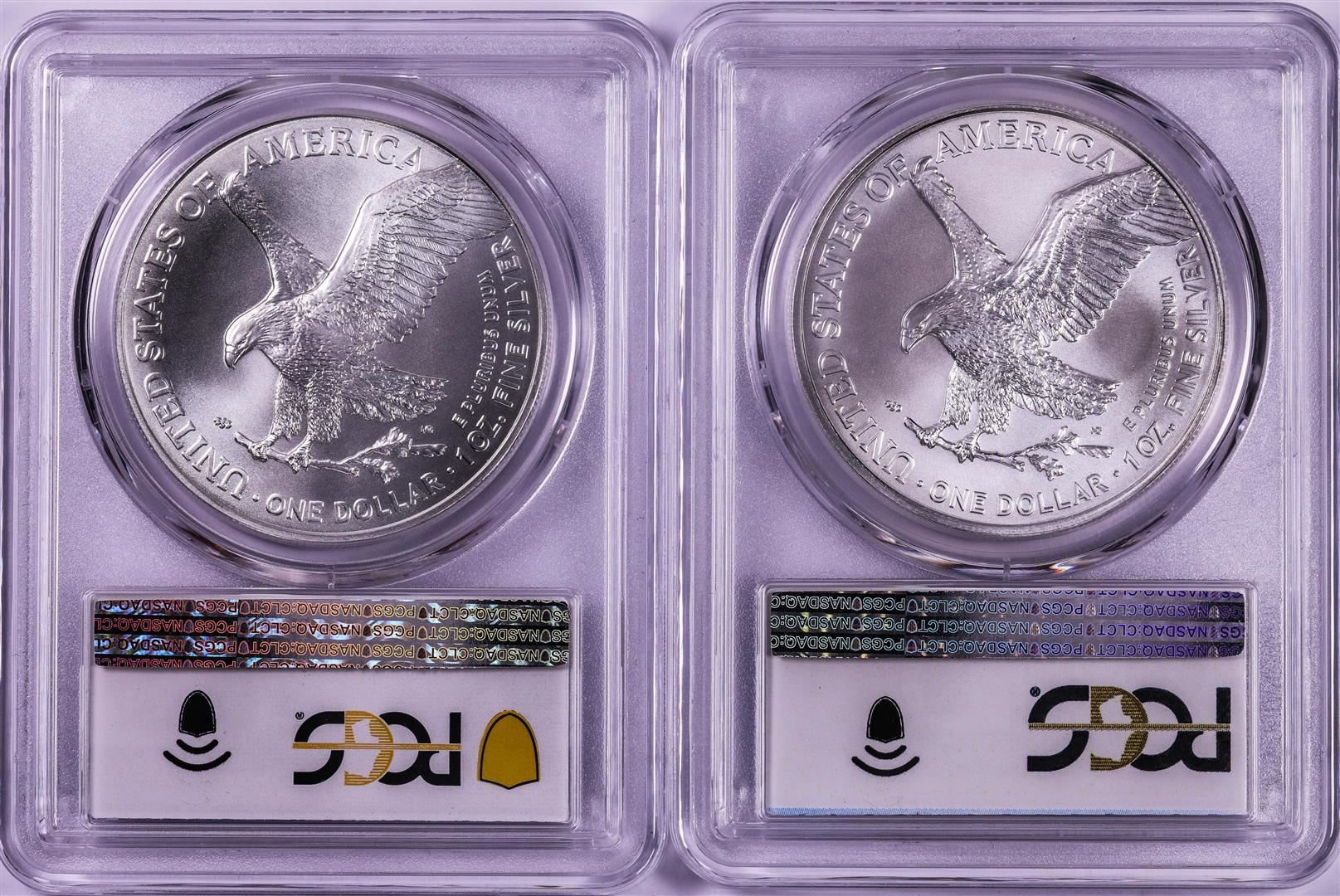 One Lot of 2021-(S) & (W) Type 2 $1 American Silver Eagle Coins PCGS MS69 First Strike.