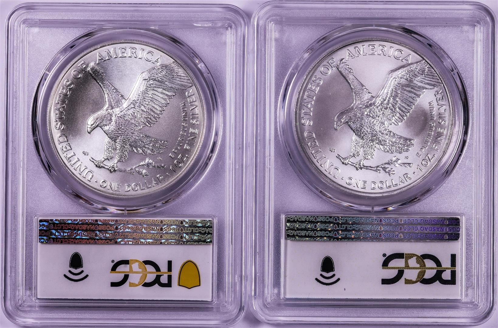 One Lot of 2021-(S) & (W) Type 2 $1 American Silver Eagle Coins PCGS MS69 First Strike.