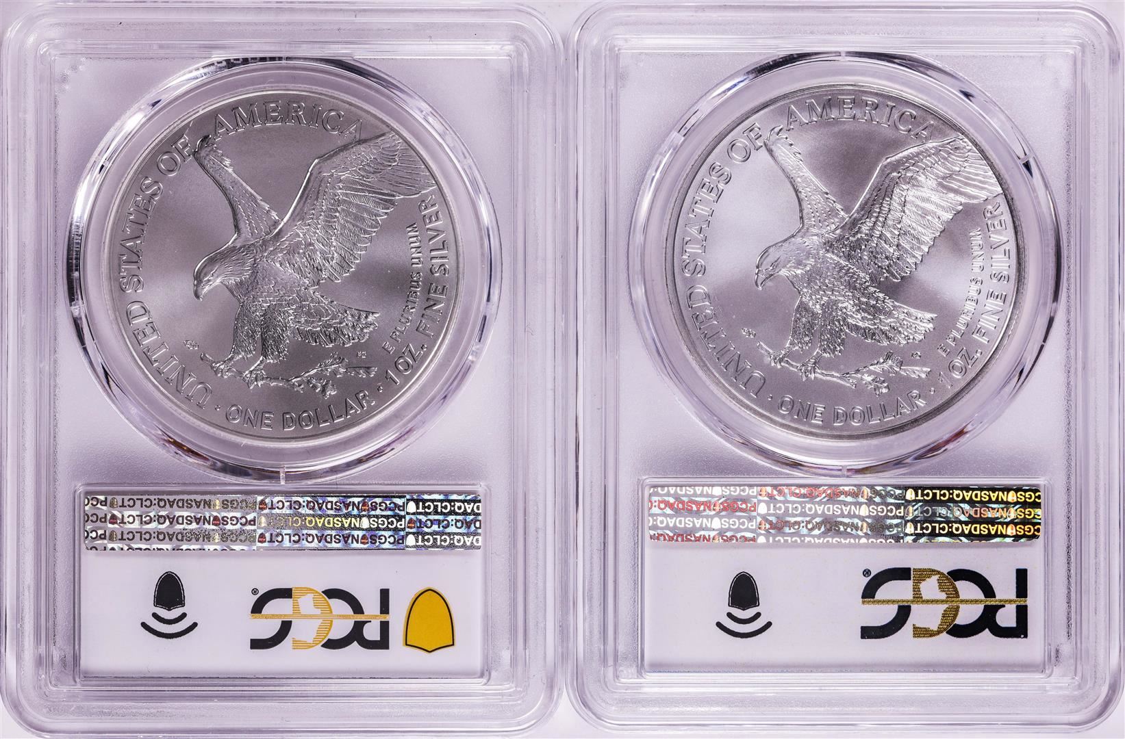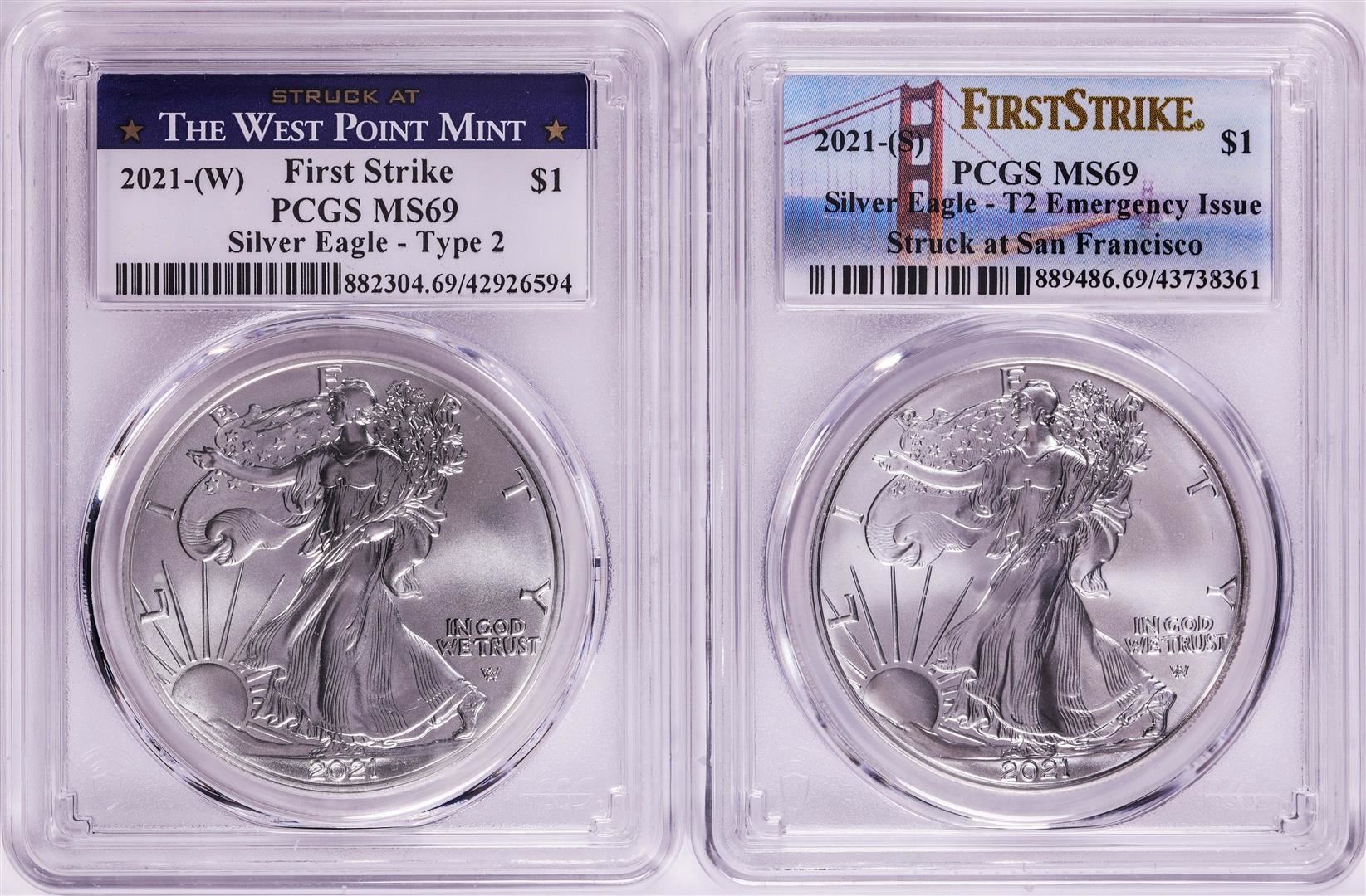 Lot of 2021-(S) & (W) Type 2 $1 American Silver Eagle Coins PCGS MS69 First Strike