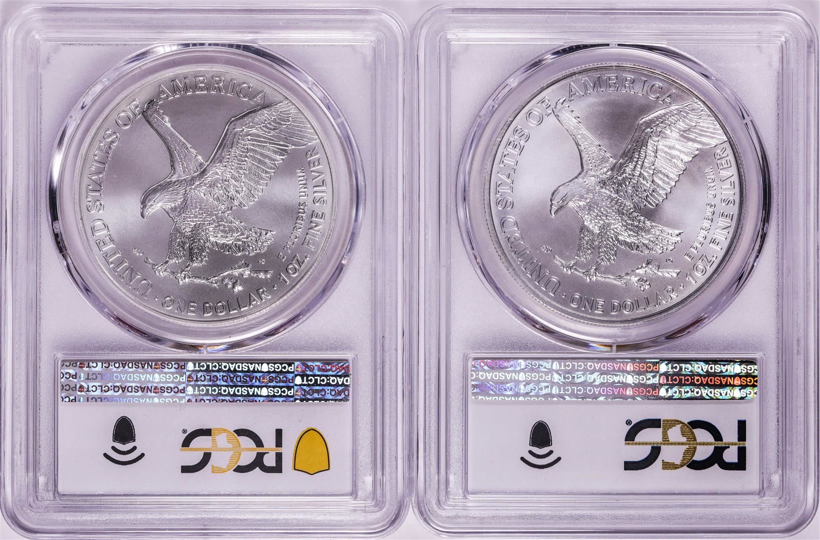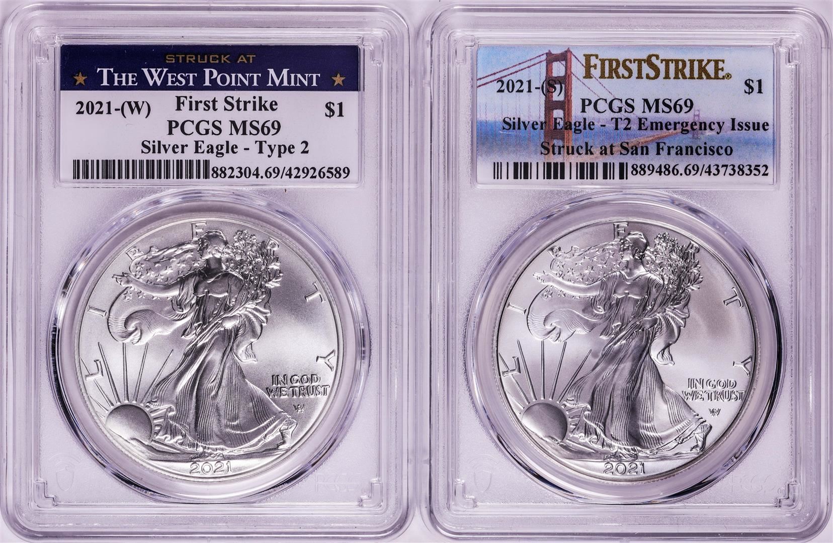 Lot of 2021-(S) & (W) Type 2 $1 American Silver Eagle Coins PCGS MS69 First Strike