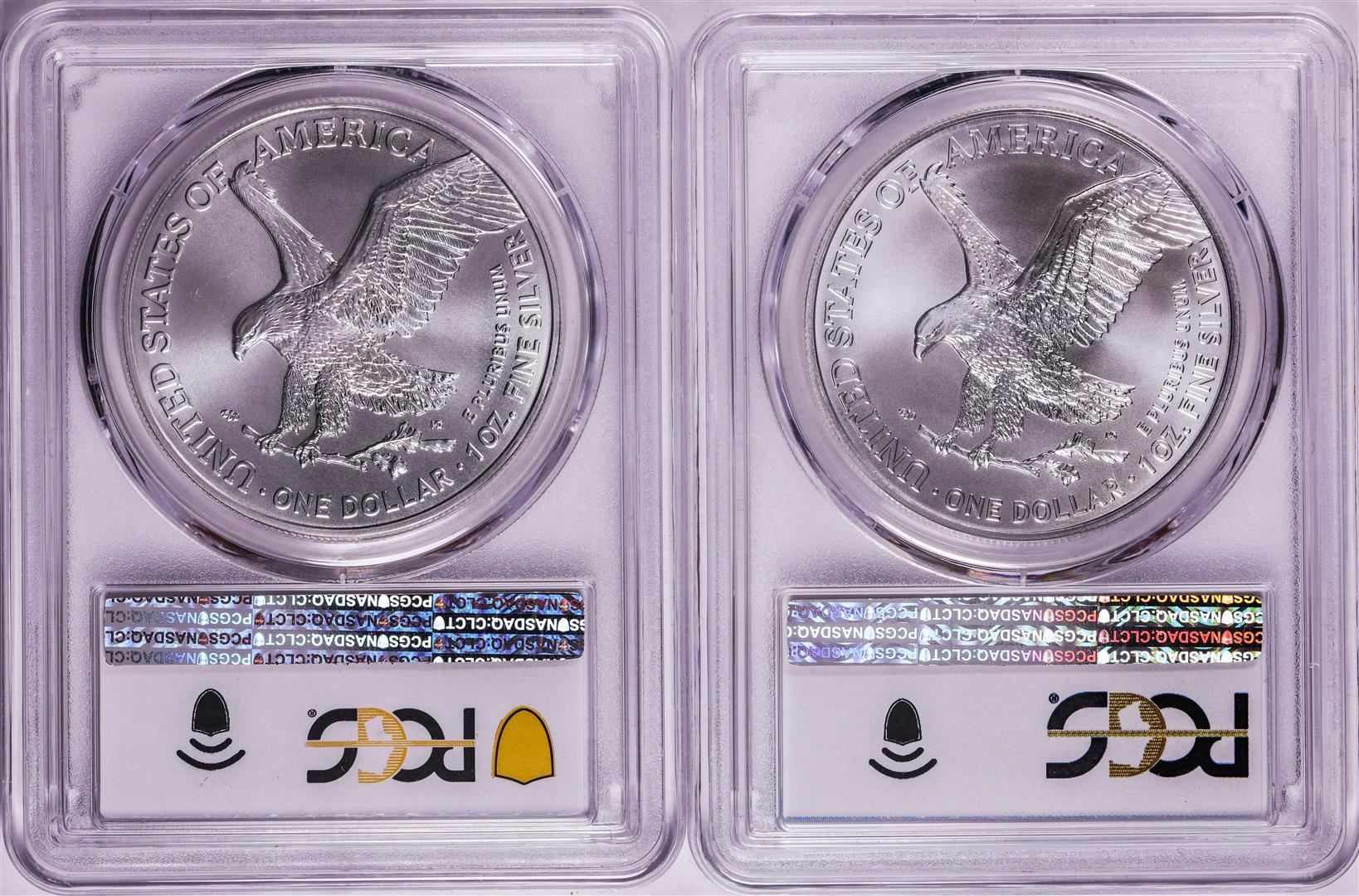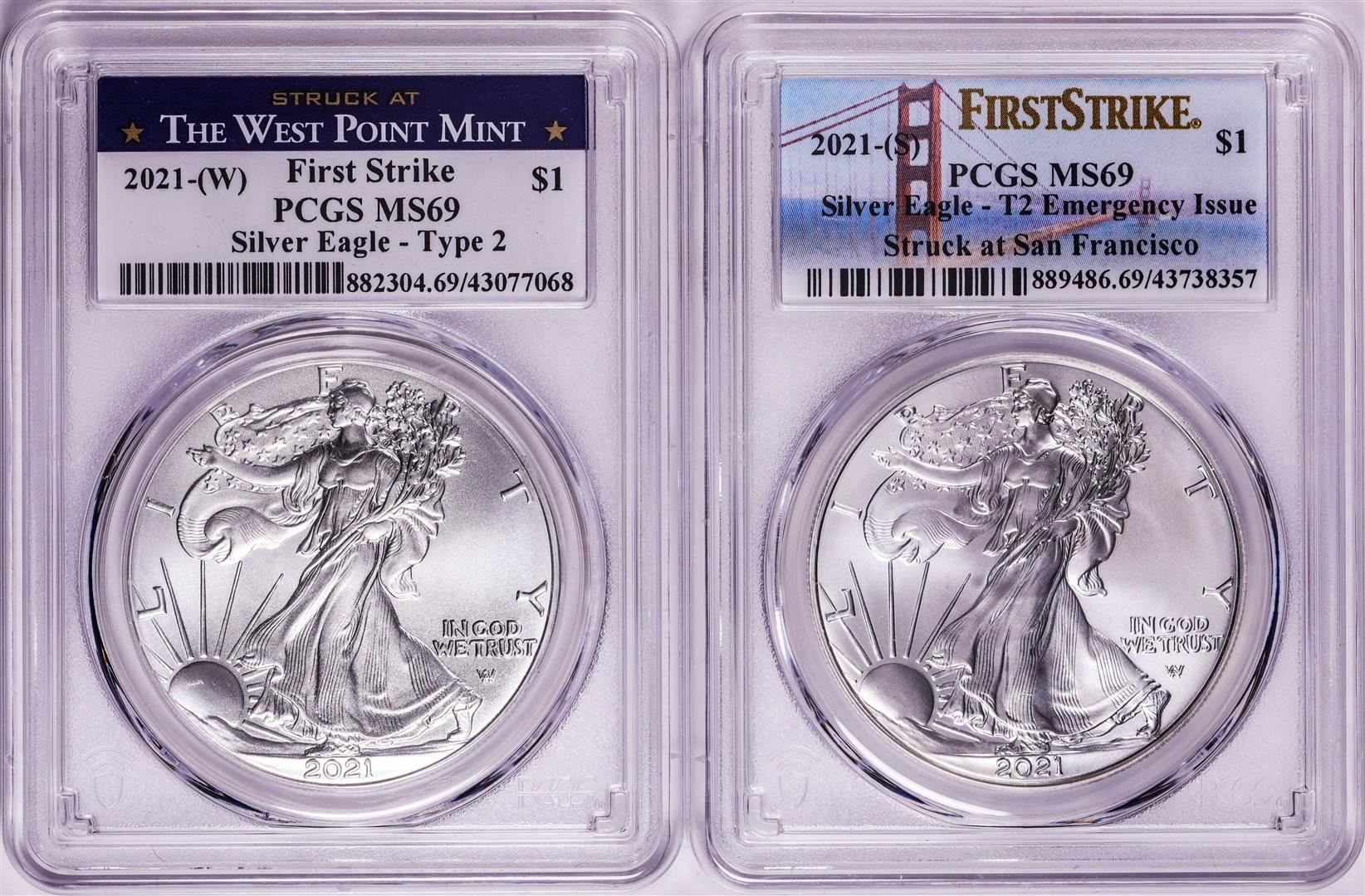 Lot of 2021-(S) & (W) Type 2 $1 American Silver Eagle Coins PCGS MS69 First Strike