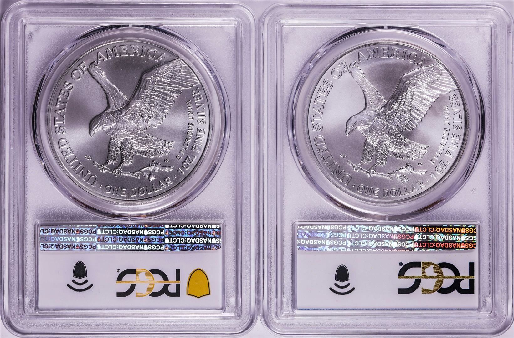 One Lot of 2021-(S) & (W) Type 2 $1 American Silver Eagle Coins PCGS MS69 First Strike. PCGS Graded.