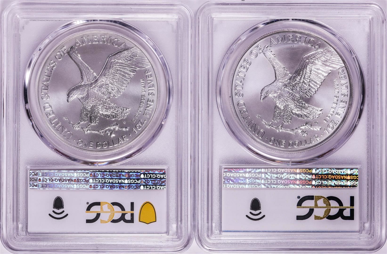 Lot of 2021-(S) & (W) Type 2 $1 American Silver Eagle Coins PCGS MS69 First Strike