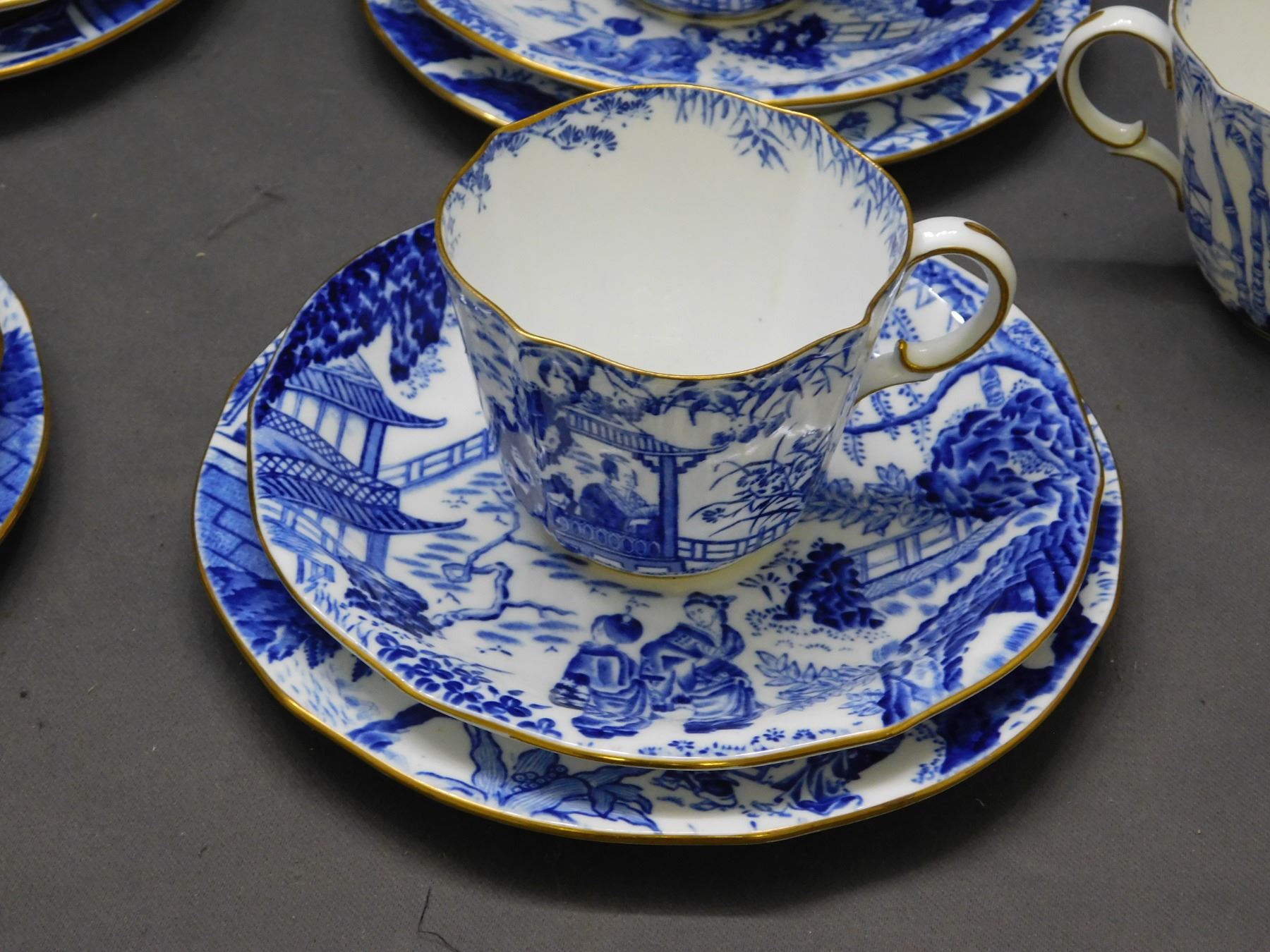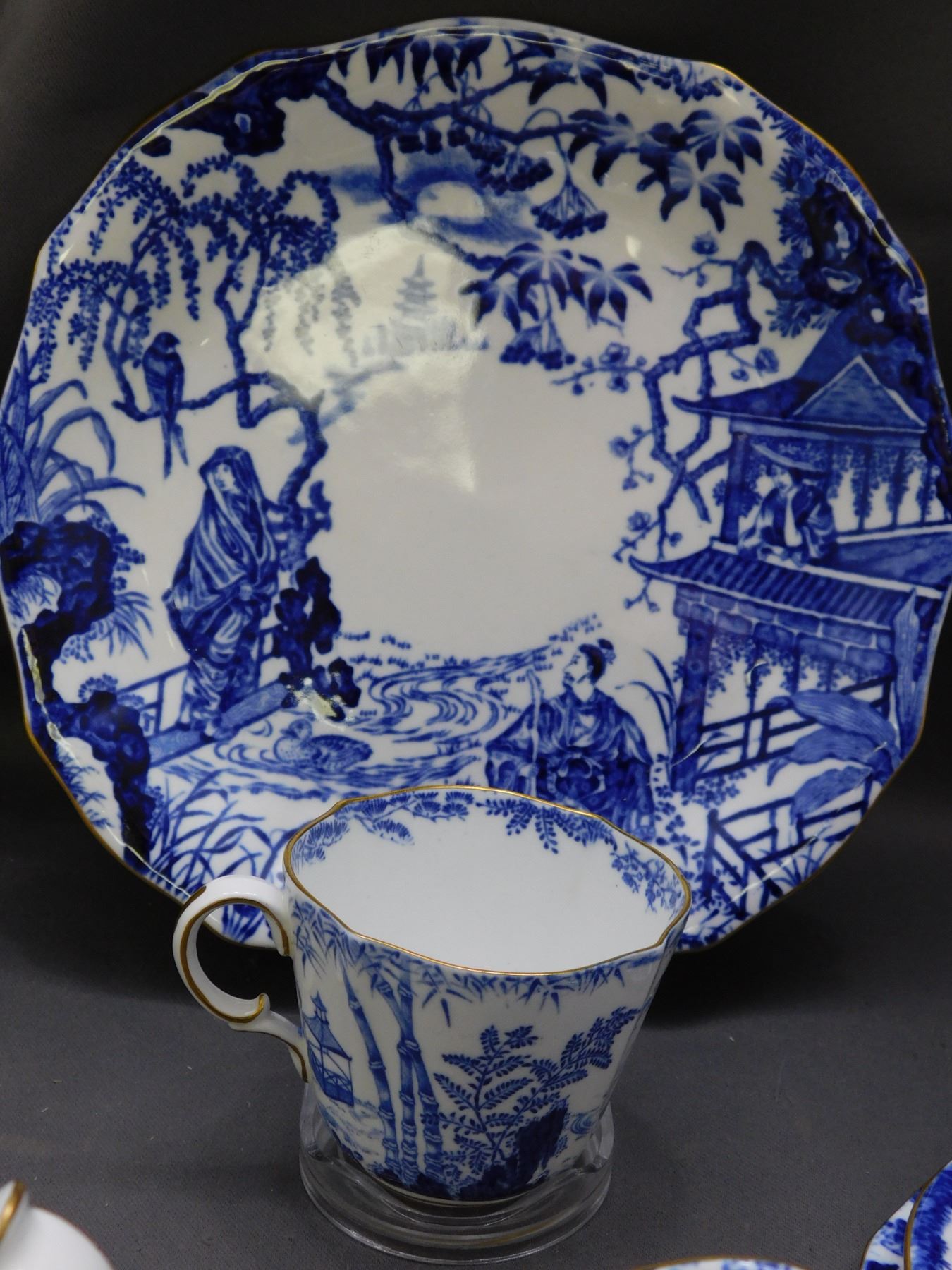 4 trios, 2 square serving dishes, 1 extra bread butter plate 4 extra cups, creamer.