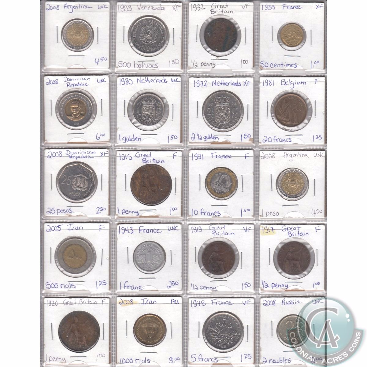 Lot of 20x Miscellaneous World Coinage Dated 1915-2008 in Plastic Page. 20pcs