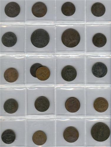 Lot of 21 Pre-Confederation Tokens from different province including a few NS Cents. Variable grade, to be viewed as unsearched. Sold as is no return.