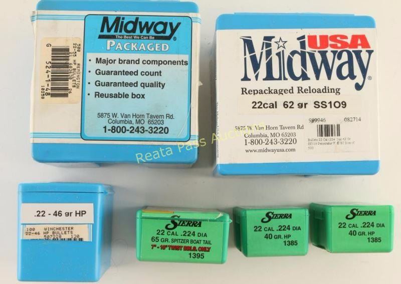Includes 55 grain HP, 62 grain SS109, two boxes of sierra 40 grain HP, one box of 46 grain HP and one box of 65 grain Spitzer BT.
