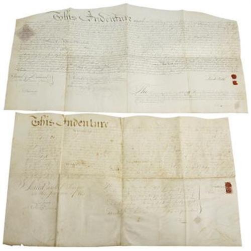 <B>Lot of 22 Indentures, Deeds, Maps, and Documents, 1687-1887,</B></I> various sizes, most vellum, some singed. Most are fine. A very nice lot.<BR><BR><b>Shipping:</b> Flat Material, Large (<a target="_blank" href="http://www.heritageauctions.com/common/shipping.php">view shipping information</a>)
