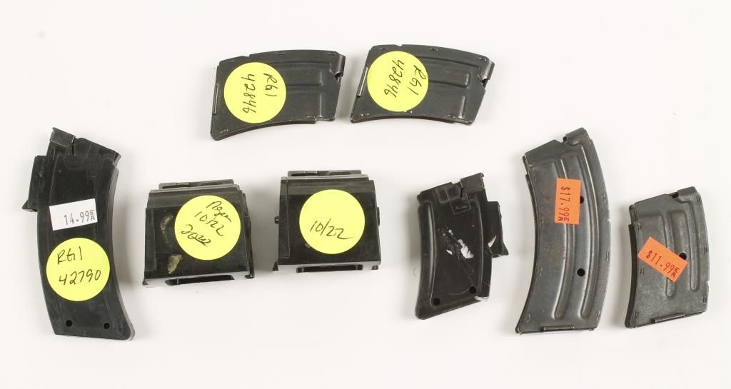 Two factory Ruger 10/22 10-round magazines. Four metal box mags and 2 plastic box mags.