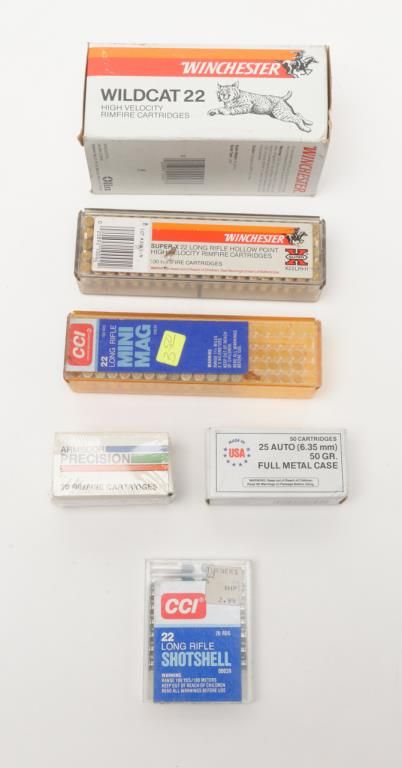 Lot of .22 ammo; various makers; equivalent of 10 boxes. Est.: $50-$100.