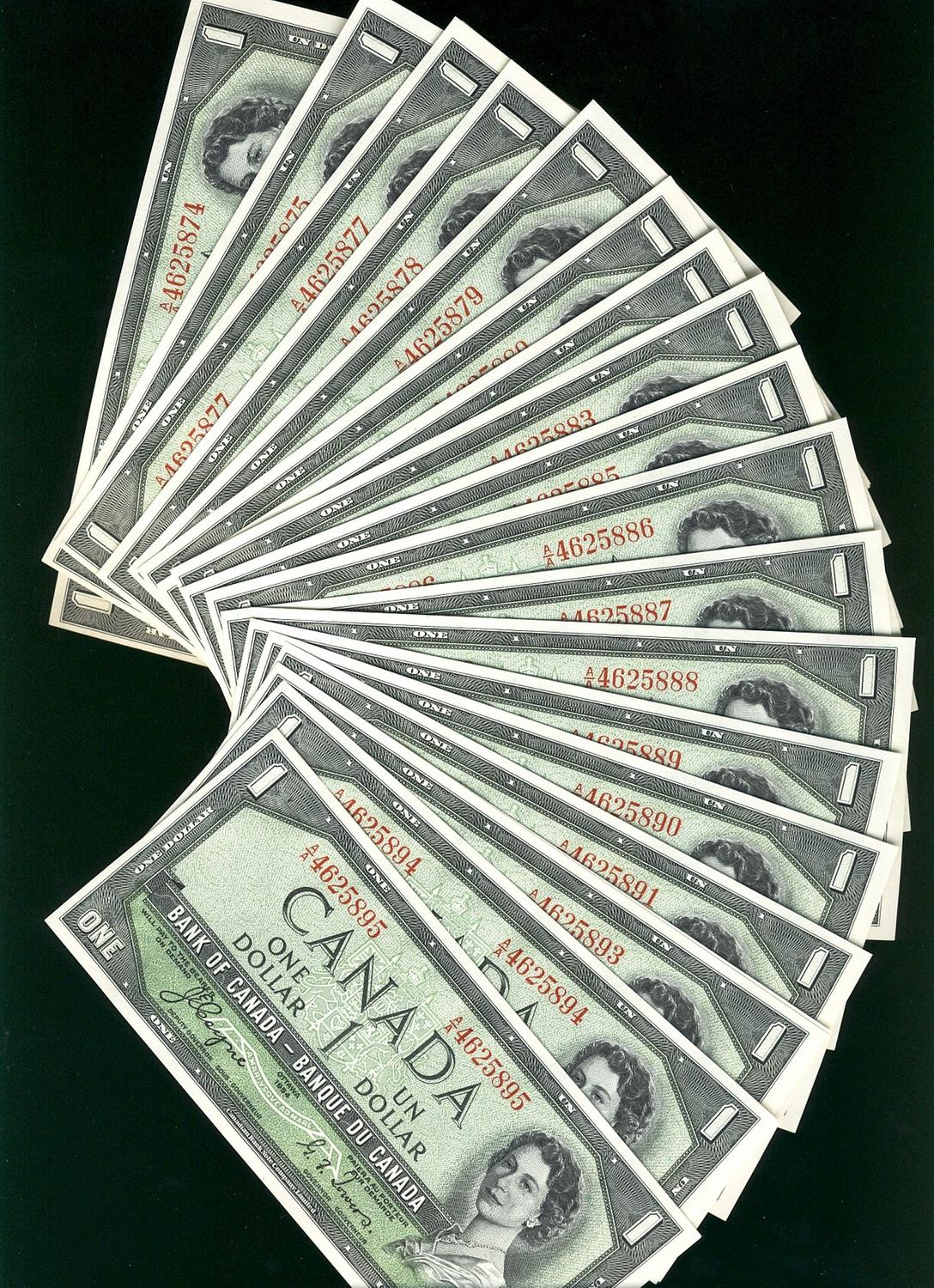 Lot of 22 consecutive numbered notes. 1954 $1 BC-29a Coyne-towers. All Choice to Gem Unc.