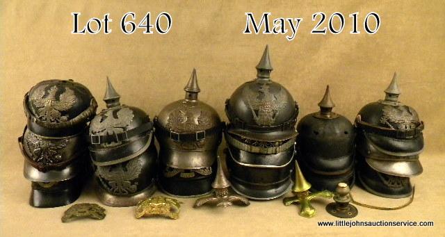 Lot of 22 imperial German spiked helmets all in various stages of condition. Most helmets are missing some parts- all in very restorable. Great dealer’s lot. Est: $1,500 - $3,000