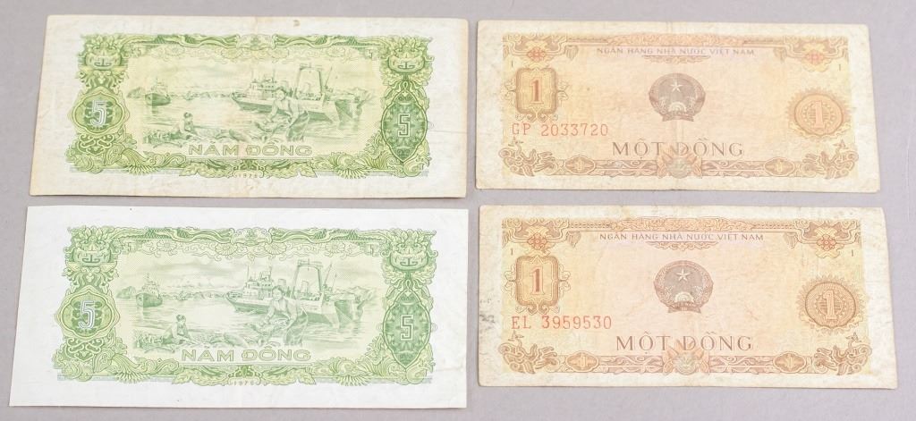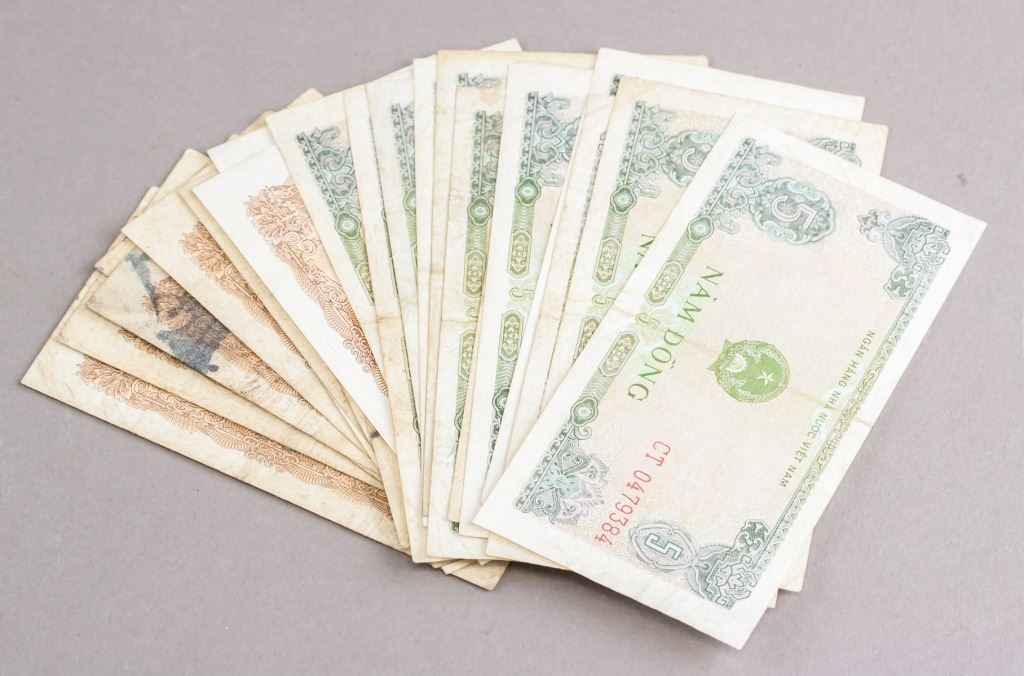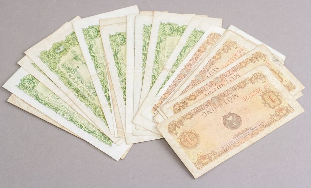 Lot of 23 Vietnamese paper money. Of 1 and 5 denominations.