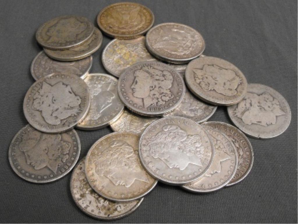 A lot with 24 Morgan Silver Dollars Over 100 years old! Various mints and dates, g-au grade.