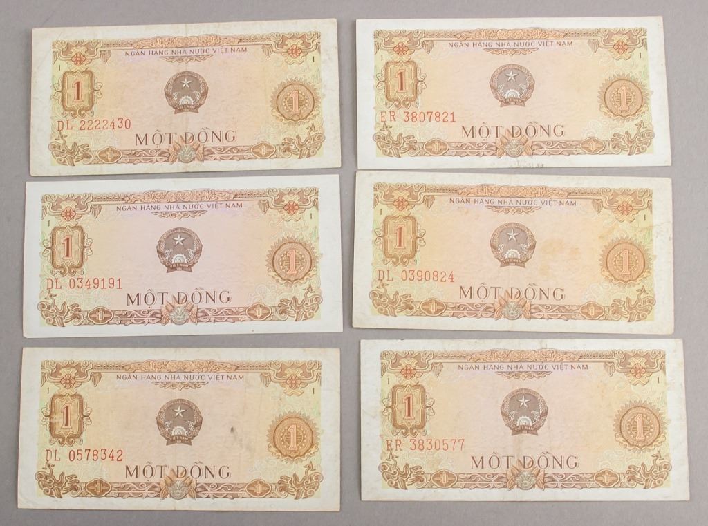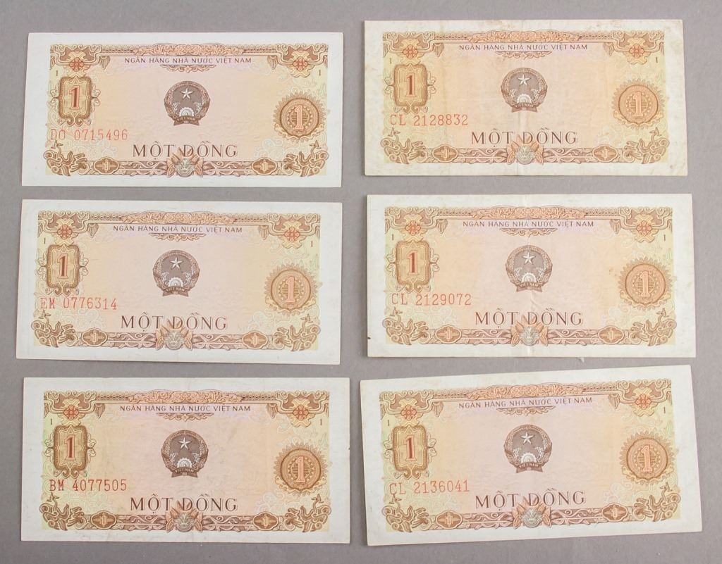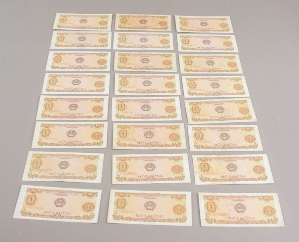 Lot of 24 Vietnamese paper money. Of denomination 1 Dong. First issued 1976, during Socialist Republic period.