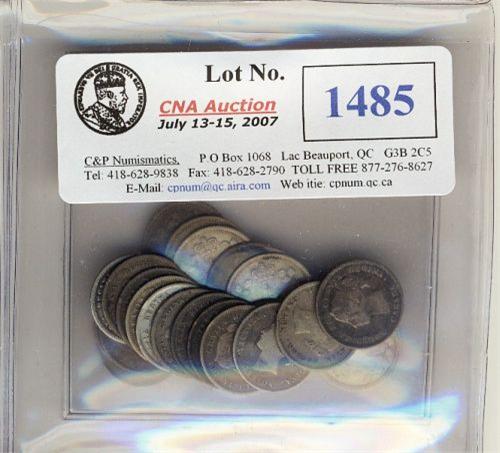 Lot of 24 different "Victorian" Five cents silver. Includes 1870FB,1870RB,1872H,1874H cross,1874H Plain, 1880H,1881H,1882H,1883H,1885 Sm5,1885 Lg.5,1886 Lg.6,1886 Sm.6,1887,1888,1889,1890H,1891,1892,1893,1894,1896,1898,1899. Average VG8.
