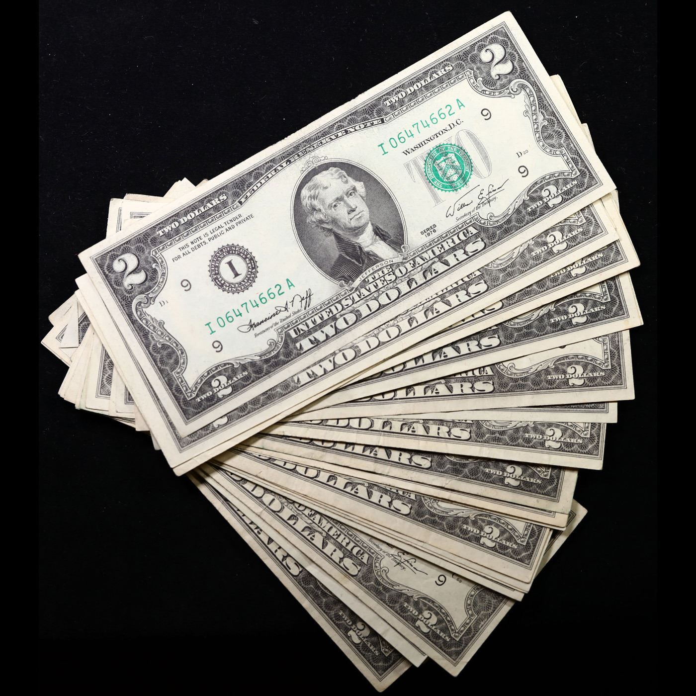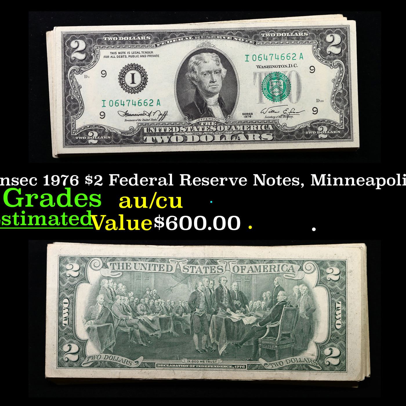 Lot of 24x Non-Consec 1976 $2 Federal Reserve Notes, Minneapolis MN, AU/CU Grades Grades