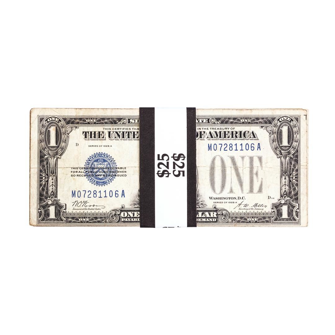 One Lot of (25) 1928/A/B $1 Funnyback Silver Certificate Notes.