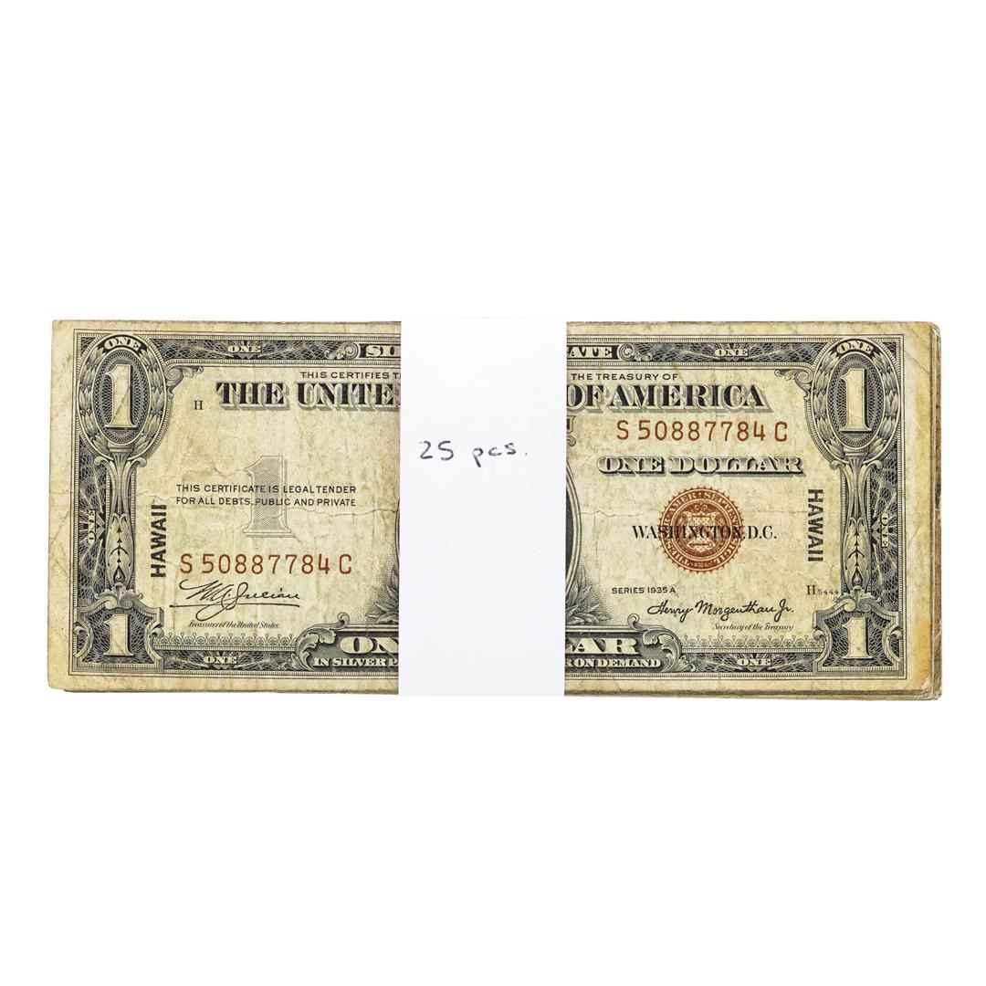 Lot of (25) 1935A $1 Hawaii WWI Emergency Silver Certificate Notes