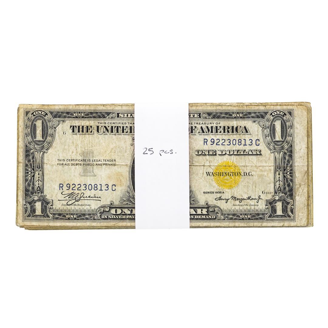 One Lot of (25) 1935A $1 North Africa WWI Emergency Silver Certificate Notes.
