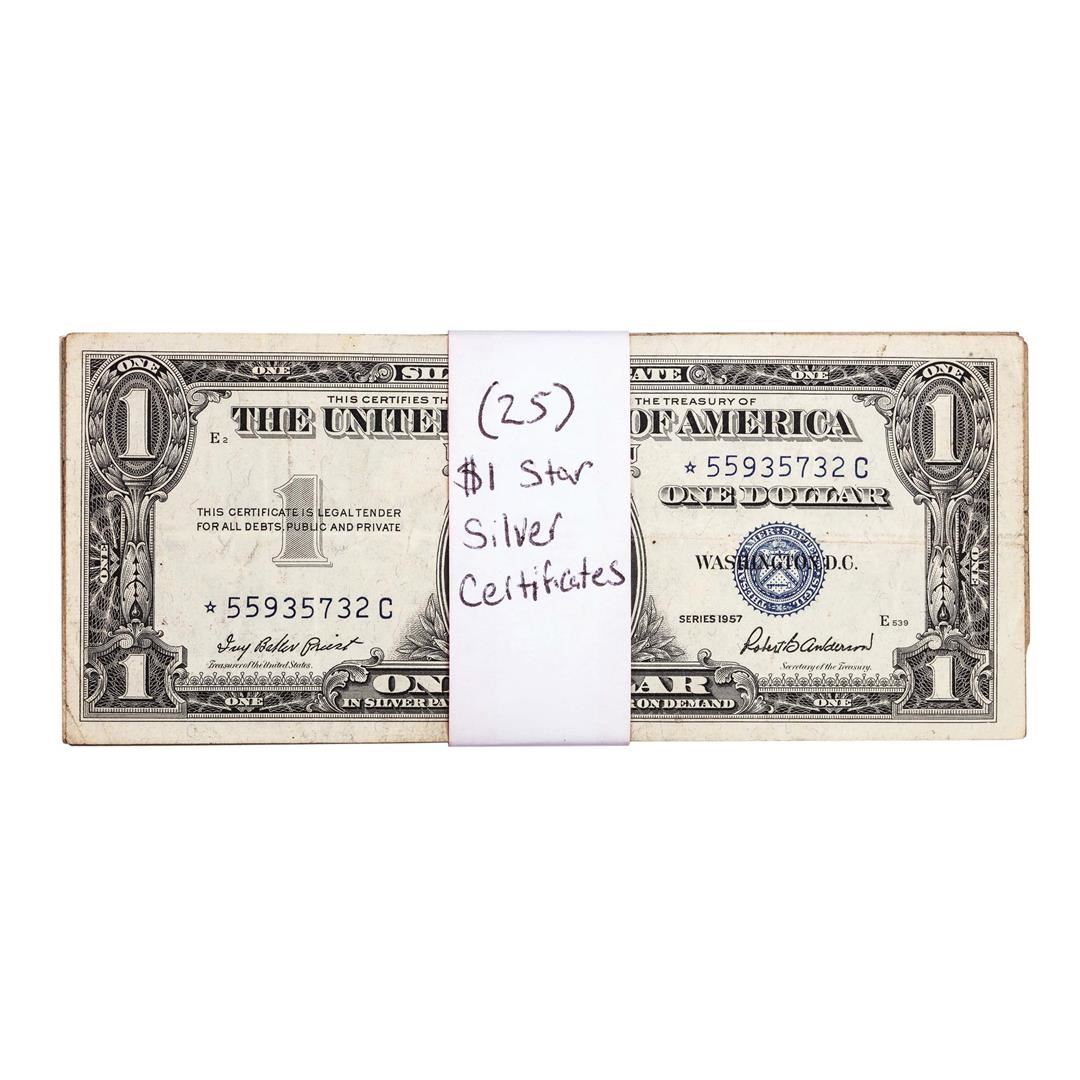 One Lot of (25) 1957 $1 Silver Certificate Star Notes.