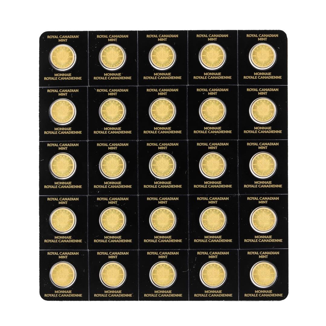 One Lot of (25) 2016 Canada 1 Gram .9999 Fine Gold Maple Coins.