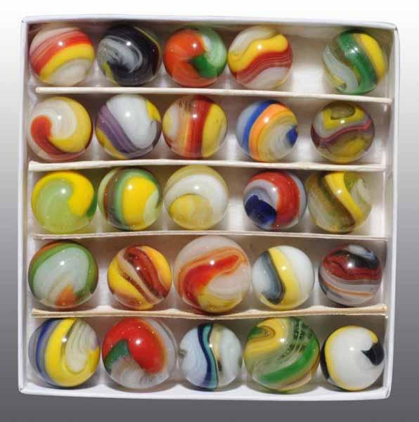 Description Includes a nice assortment with a couple purples, hybrids, and one red, white, and blue marble. Condition (9.5 - 9.8+). Size Largest: 3/4" Dia.