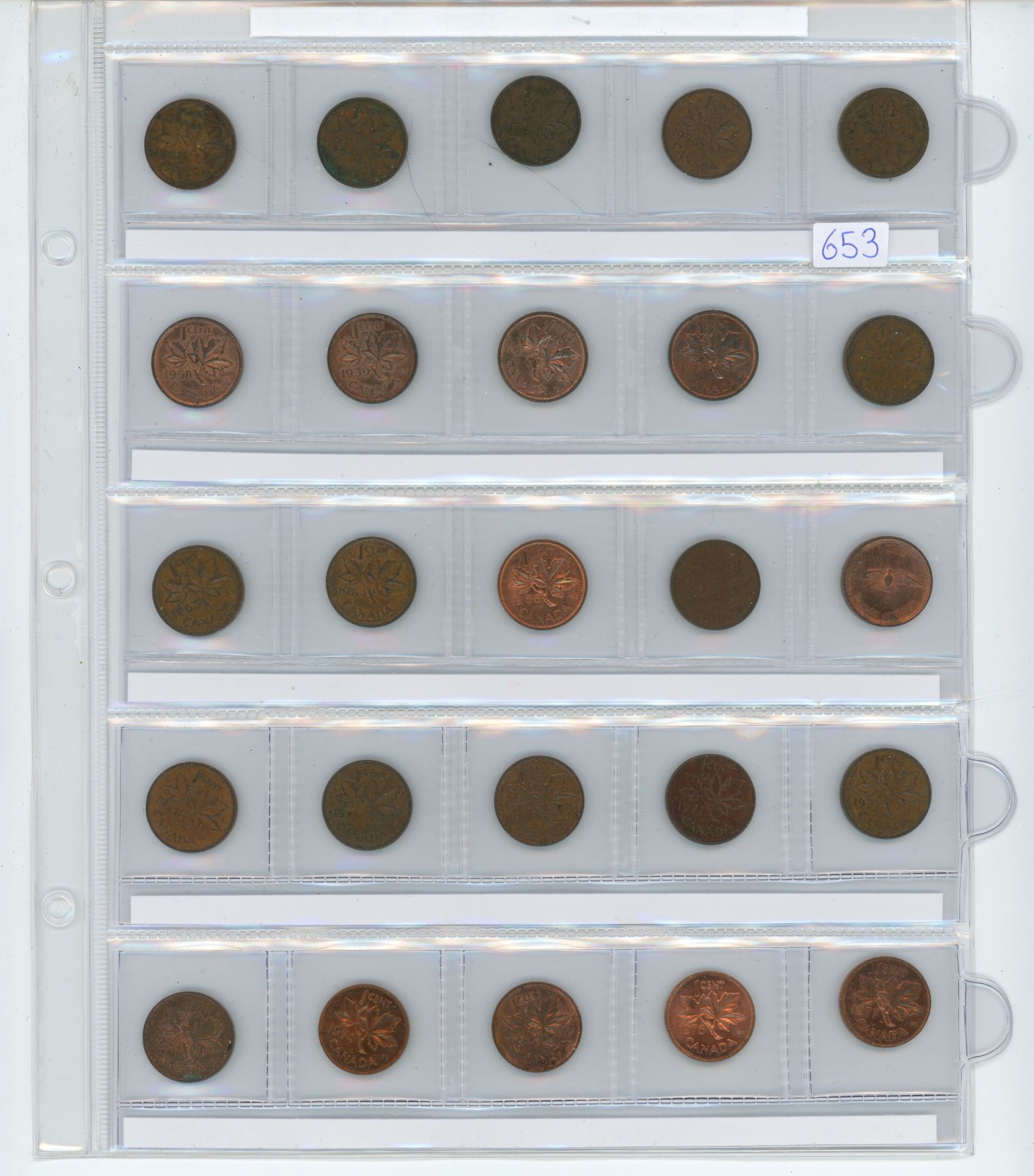 Lot of 25 Canadian Elizabeth Small Cents. One of each date from 1953 to 1977. 11 of the coins are Uncirculated or Brilliant Uncirculated.