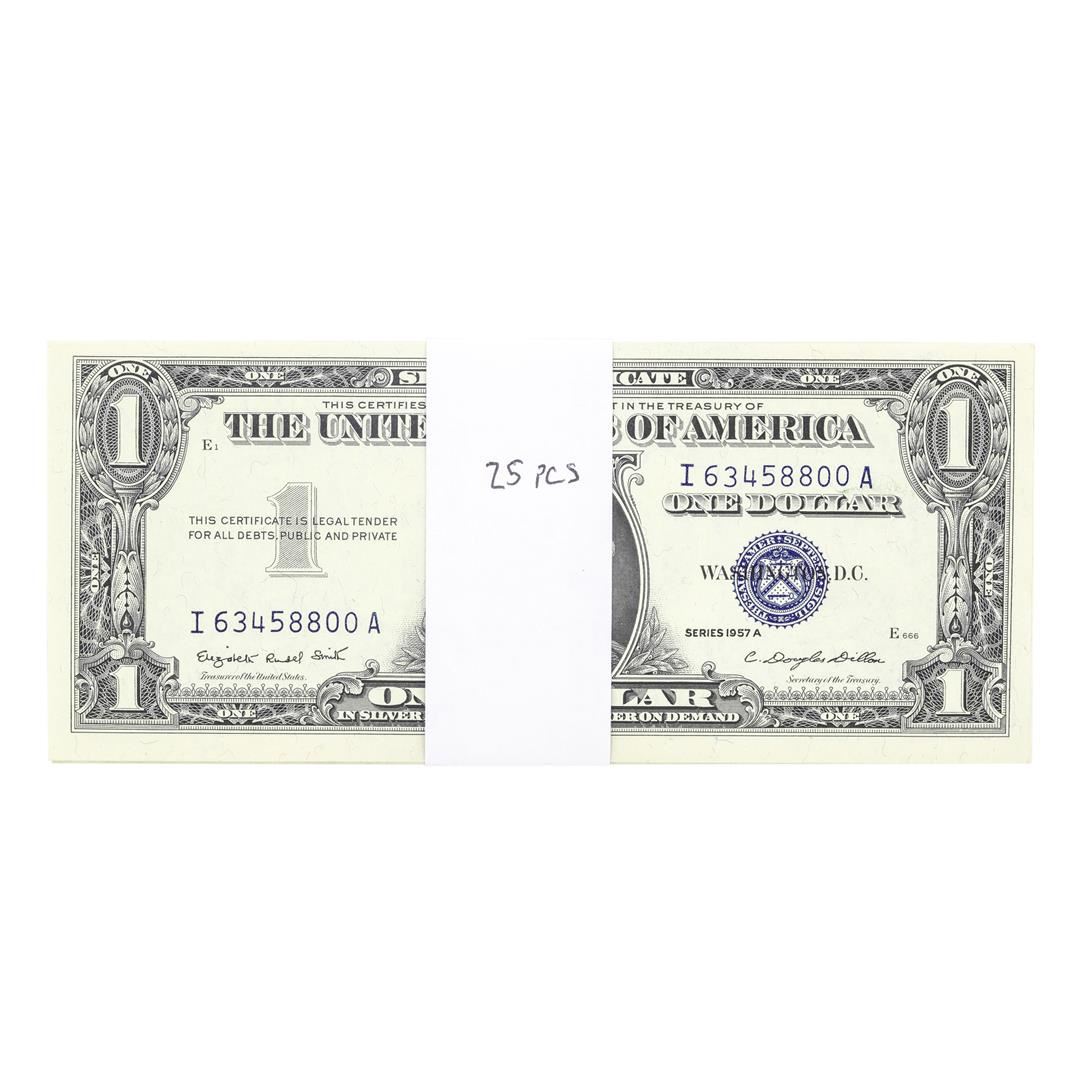 One Lot of (25) Consecutive 1957A $1 Silver Certificate STAR Notes Uncirculated.