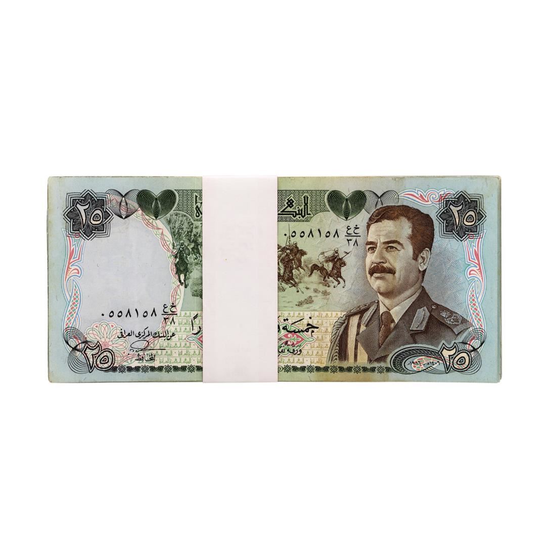 One Lot of (25) Iraqi 25 Dinars Saddam Hussein Notes.
