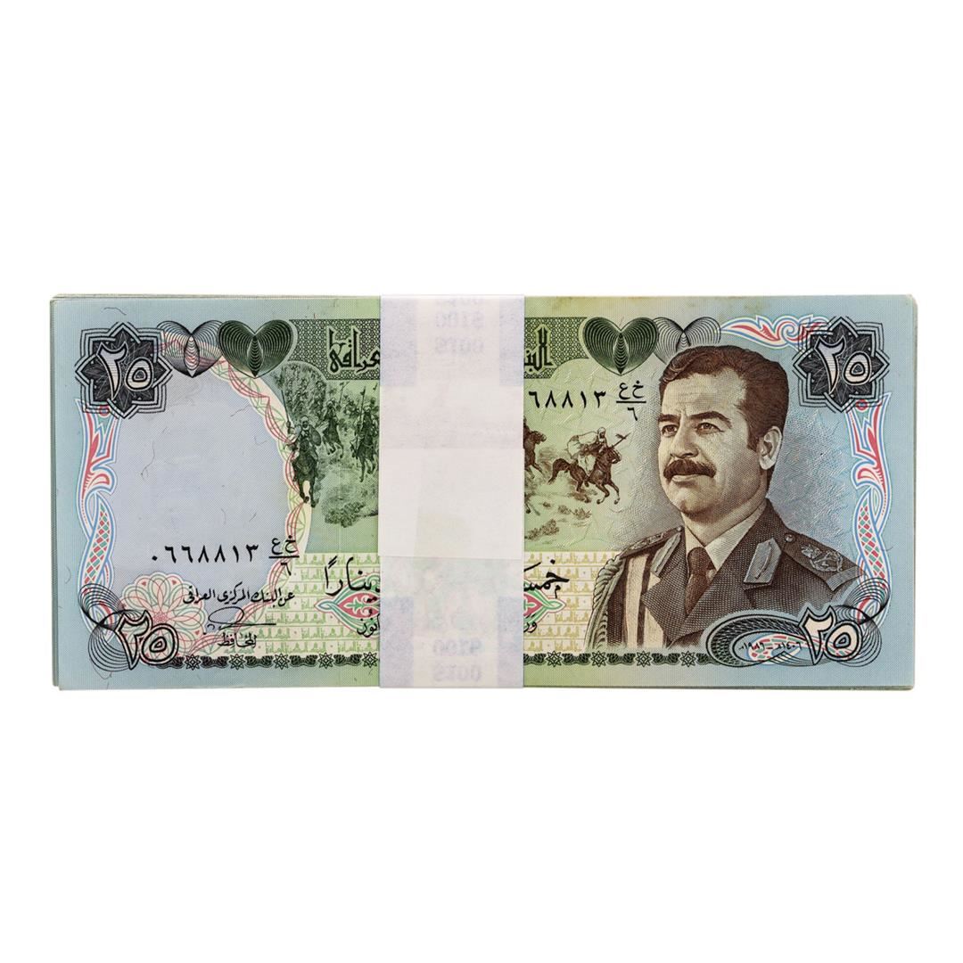 One Lot of (25) Iraqi 25 Dinars Saddam Hussein Notes.