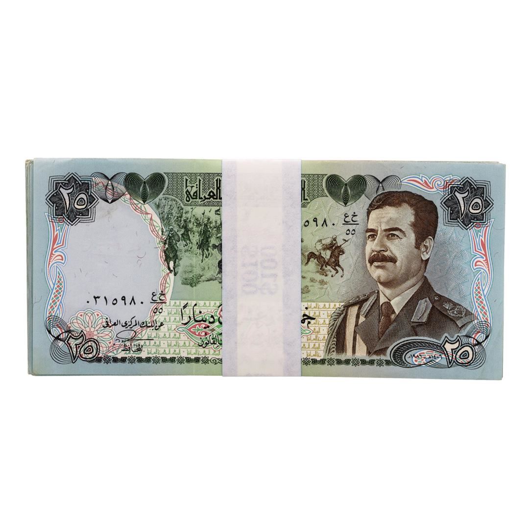 One Lot of (25) Iraqi 25 Dinars Saddam Hussein Notes.