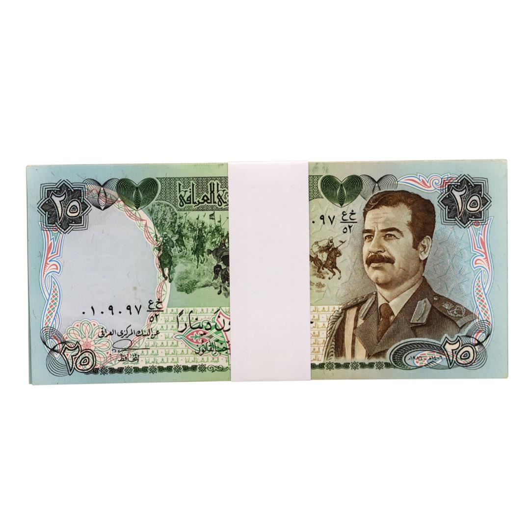 One Lot of (25) Iraqi 25 Dinars Saddam Hussein Notes.