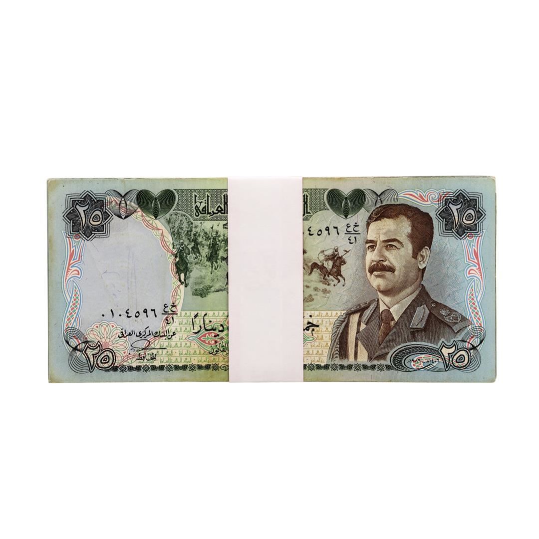 One Lot of (25) Iraqi 25 Dinars Saddam Hussein Notes.