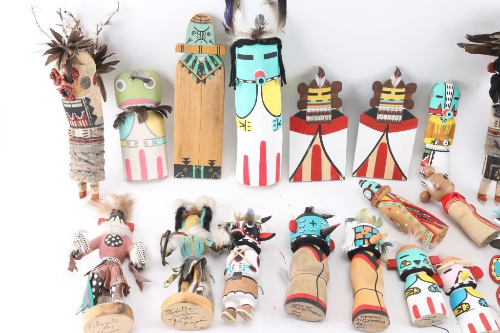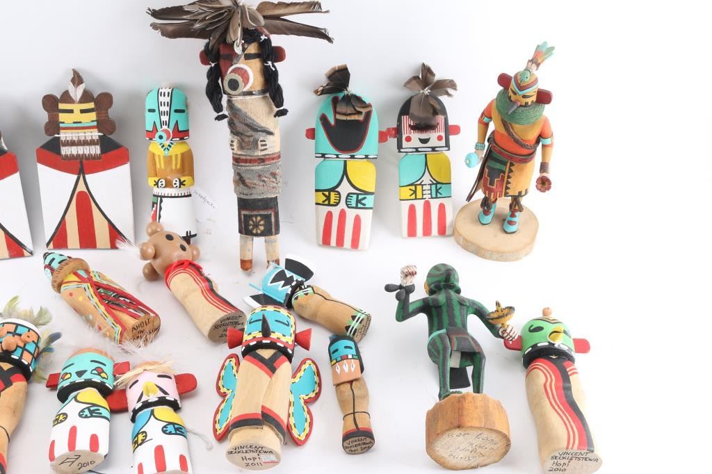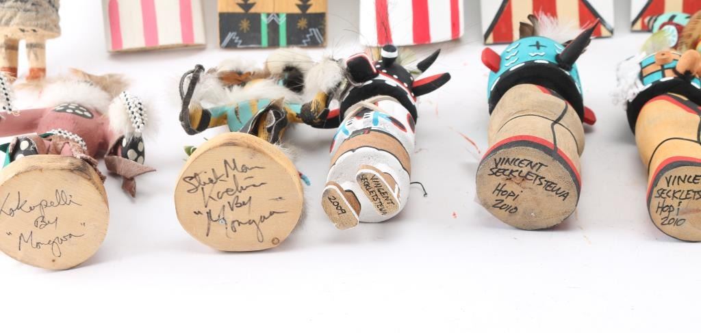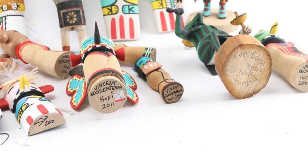 (7) Formless body kachinas with carved heads, signed by Vincent Seckletstewa, Hopi, 2010, one is dated 2011. Measuring 5" to 7 1/2".