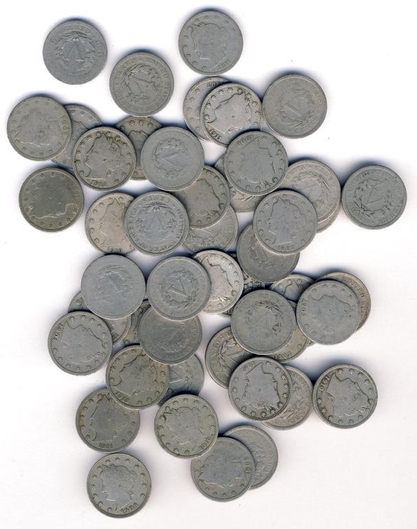 A lot of 25 circulated V Nickels- Assorted dates and grades. ag-f-