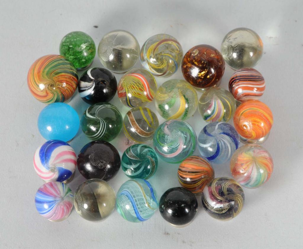Includes two Lutz, one peppermint, two clear and other handmade marbles. Condition (Excellent). Size Largest: 13/16" Dia.